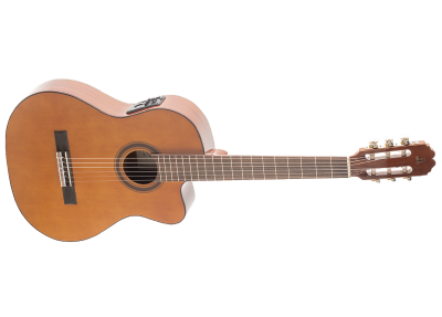 Guitarra MALAGA-ECFT, Con Corte y EQ Fishman Clasica III, Media Caja, Tapa de Cedro Macizo, Aros y Fondo de Sapeli, Ribetes negro en Tapa, Fondo y Tira, Brazo de Caoba Africana, Diapason y Puente de Kabukali, Terminacion Brillante, Made in España.