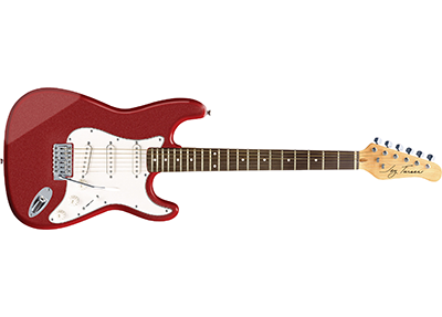 Guitarra eléctrica tipo Legacy / Strato, cuerpo sólido, mastil de Maple, trastera de Rosewood, 3 single coil pick-ups, selector de 5 posiciones, 1 controlador de Volumen y 2 de Tono, pickguard blanco, standar tremolo y ajuste fundido a presión. Metallic Red.