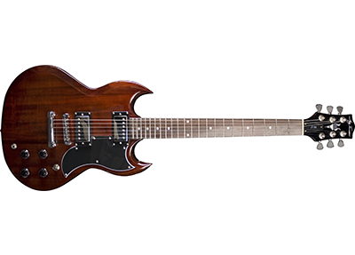 Guitarra eléctrica tipo SG, cuerpo sólido, cuello de maple, hardware de oro, Tune-o-matic bridge & stop tailpiece, 2 humbucking pick-ups, 2 controles de volumen y 2 tonos, sintonizadores Diecast. Walnut.